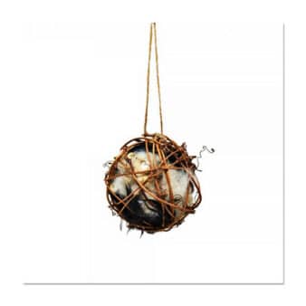 Our Circle Vine Nesting Ball is filled with clean Alpaca fur, a favorite of nesting Chickadees, Titmice, and more during nesting time. Hang this 5″ round grapevine ball out, and watch your birds come and take the fur to line their nests. The insulating Alpaca fur is perfect for keeping fledgling nestlings warm.
